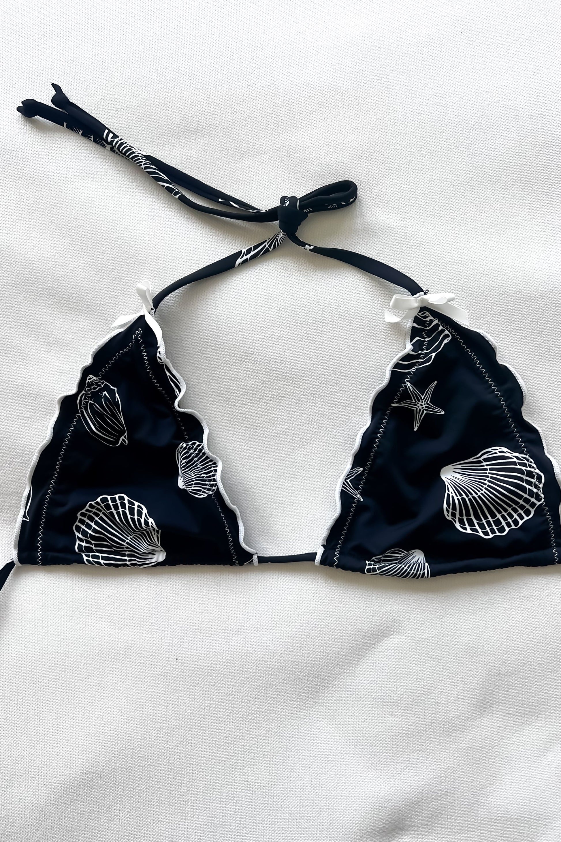 The Shell Shock Bikini Top features a sleek black seashell design, perfect for a stylish summer look. Crafted to provide both comfort and support, this bikini top enhances your body while embracing a beach-ready aesthetic. Ideal for sun-soaked days, it combines fashion with function for confident, effortless wear.